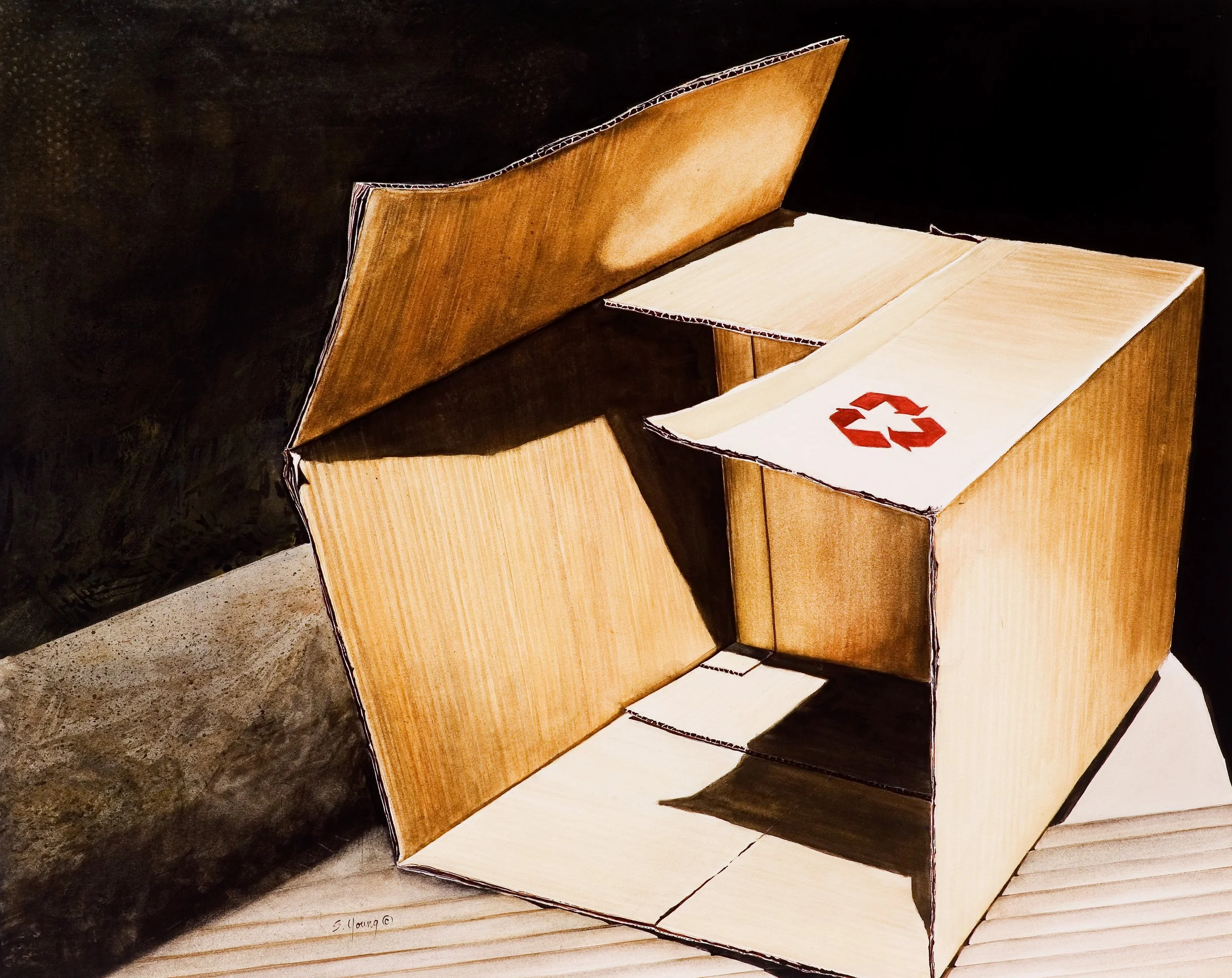 The recycling lifestyle that farmers had always embraced finally started to appear on the West Coast in the 1960’s. While studying architecture in 1968 at the University of Southern California, my cousin, Gary Anderson, won a competition for designing a recycling logo. This symbol is now as familiar and common as the cardboard box itself.