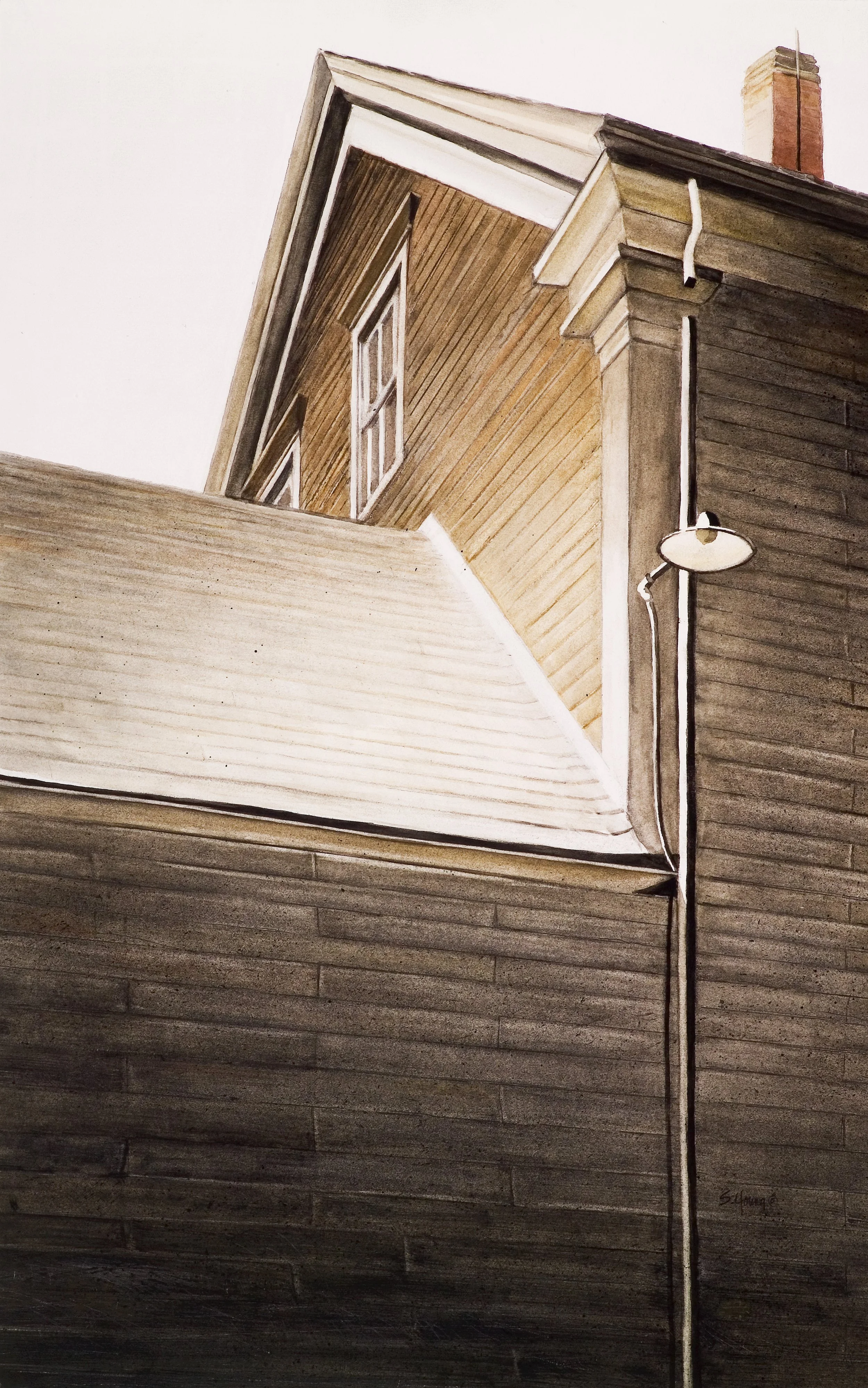 Even though I never met Andrew Wyeth, he greatly influenced my own art. I painted Stalwart based on memories of Dad’s protective nature; Andrew and Dad had many commonalities. Christina’s farm was one of Andrew’s favorite painting subject matters. Seeing the strong angles of Christina’s weatherworn house brought back memories of our elderly widowed neighbor’s farmhouse. Even though most elderly women moved to town after their husbands died, Mrs. Leudtke wanted to stay in her home and keep her memories alive. Her desire to maintain independence was unshakable. Dad routinely checked in on her to make sure she had enough food and heat during the brutal Nebraska winter months. Although he usually showed a tough exterior, looking out for those in need exposed his warm, protective heart.