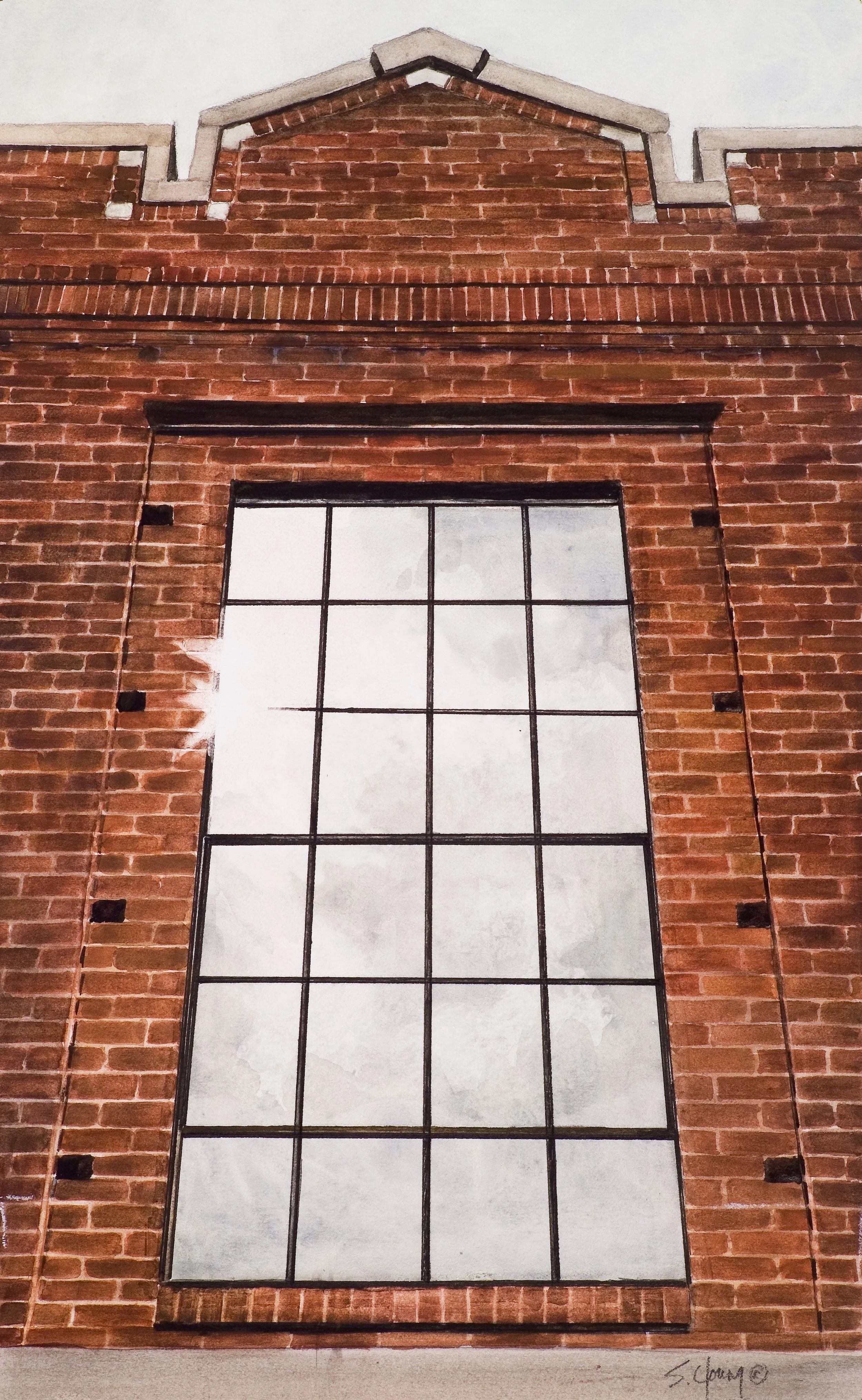 The demolition of this building in 2006 became, for me, a symbolic ending of a past pain. The sun glare seen on the window symbolizes a need to focus on the Light when revisiting any dark areas of the past. Living in the present, while being an observer of the past, creates an opportunity for growing stronger.