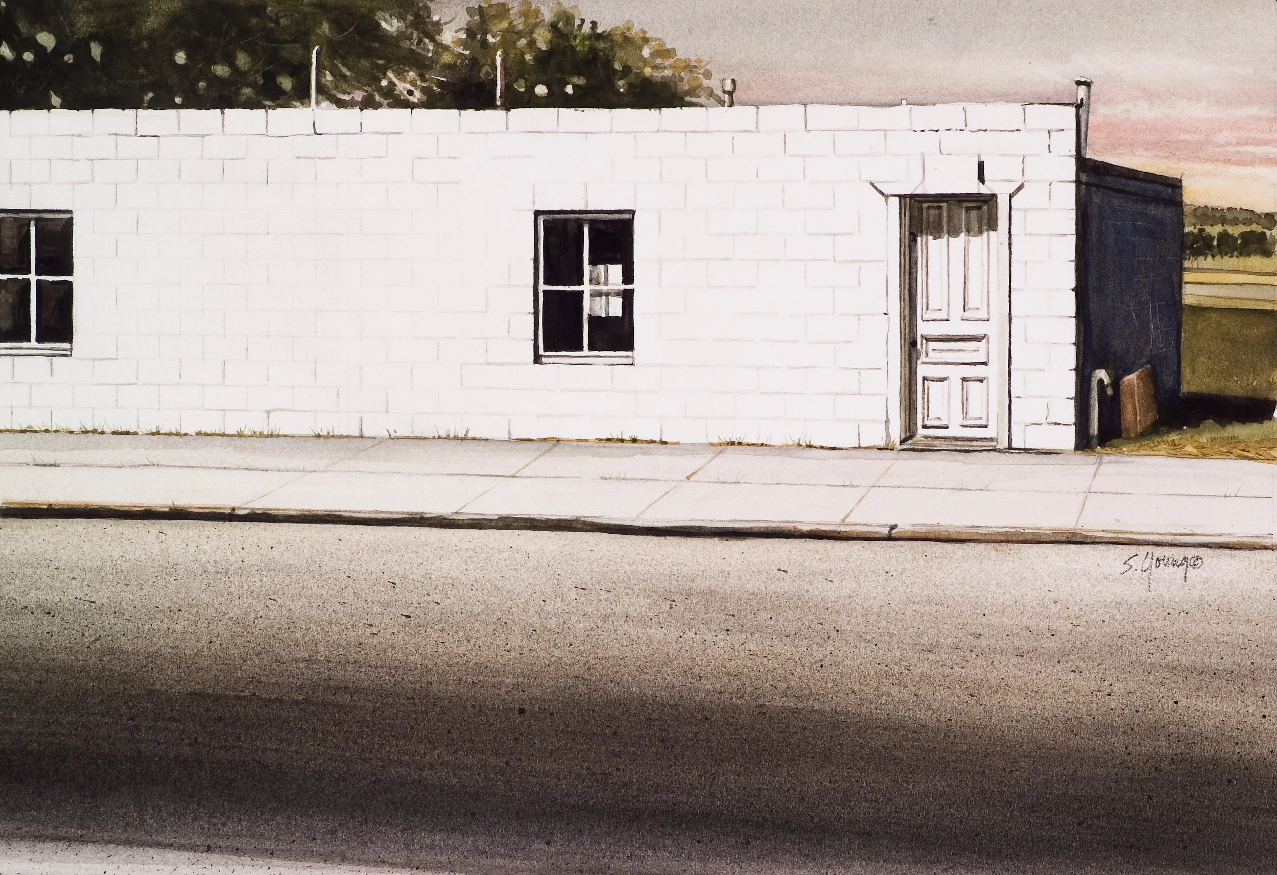 (Concrete building on Uehling’s main street)